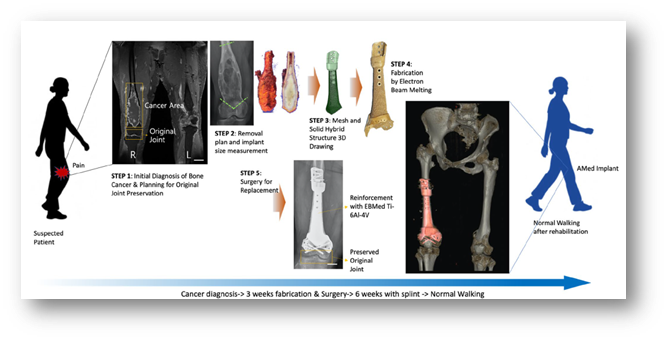 Obr. č. 2 Jong Woong Park, National Cancer Center Korea, In vivo analysis of post-joint-preserving surgery fracture of 3D-printed Ti-6Al-4V implant to treat bone cancer, Bio-Design and Manufacturing , July 2021 [1]