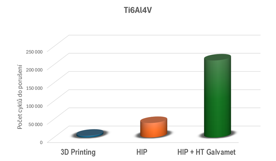 A jak to vychází nám? Aplikací HIP se výrazně zlepší mez kluzu a tažnost materiálu. Pokud se ale ještě zařadí další tepelné zpracování, dojde ke strmému nárůstu únavových vlastností. To je pro životnost implantátu naprosto klíčové.