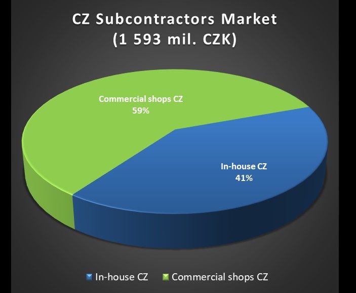 Obr.č.1 – Odhad velikost trhu Captive a Subcontractors dohromady – celkem 142 subjektů Na obr.č. 1 je vidět podíl jednotlivých technologií na celkovém trhu v CZ a