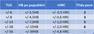 U nízkotlaké cementace, CQI-9, tab. F je třída pece Class 3 akceptovatelná, protože se obvykle jedná o popouštění na nízké teploty, a u cementovaného povrchu se vejdeme do tolerance +/- 1 HRc (Obr.č. 6).