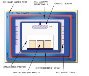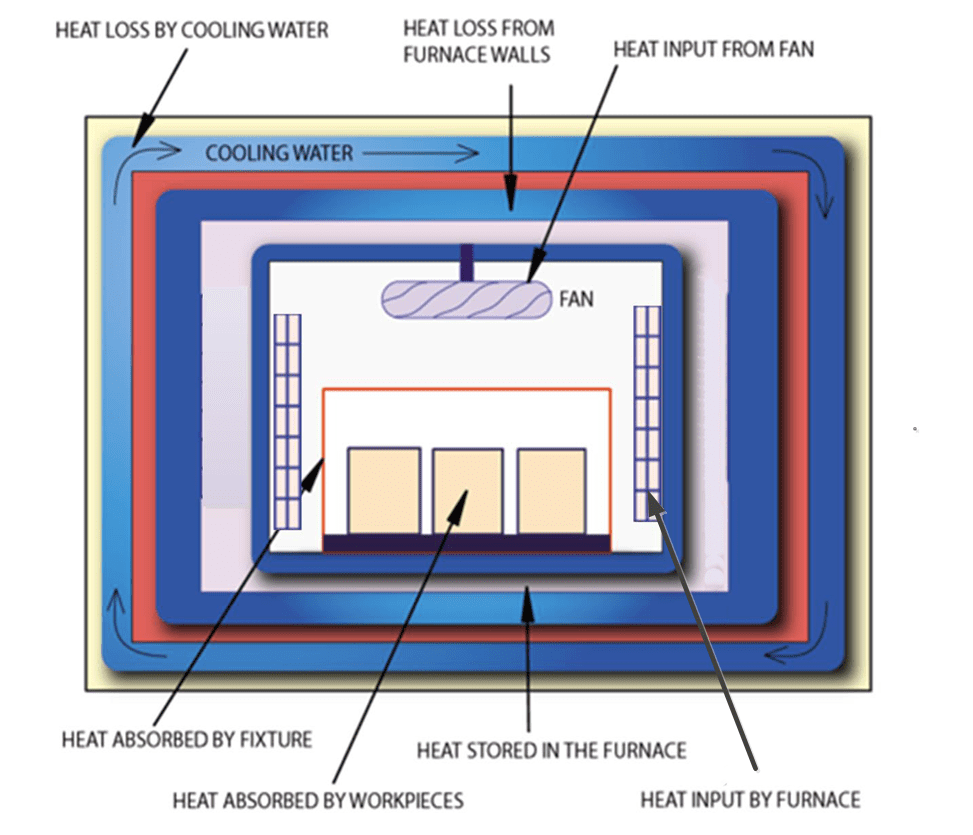 Pro naše účely je ale důležitá energetická koncepce pece. Měla by zajistit, aby maximum vložené energie se přeneslo na vsázku. U plynem topených pecí je to problém, protože 30% vložené energie nám jde do spalin. Pokud tedy elektricky topená pec pro žíhání a popouštění má účinnost 66%, pak plynem topená pec bude mít účinnost jen 46%.