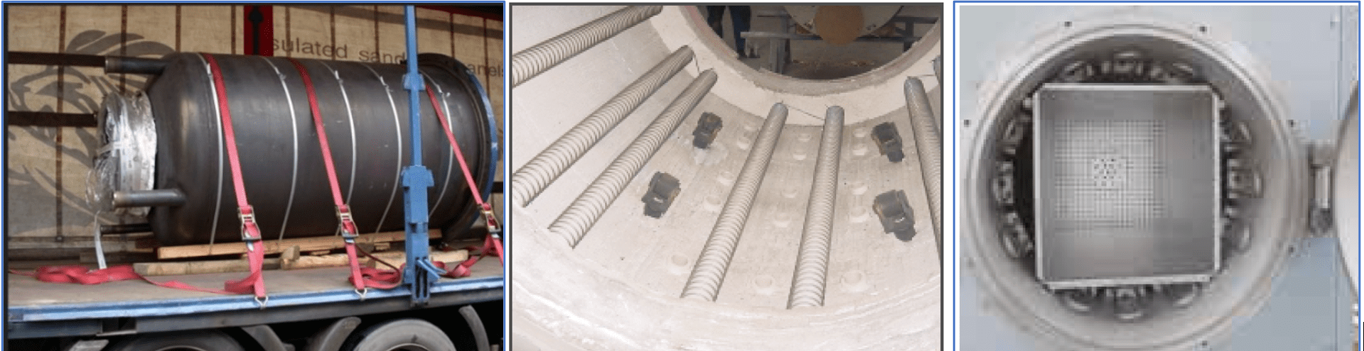Obr. č. 7 a 8 – Topné prvky historické vakuové popouštěcí pece Elterma VDFC a vnitřní komora