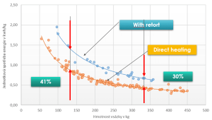 Obr. č. 14 – Graf porovnání retortové pece a pece s přímým ohřevem