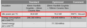 Obr. č. 15 – Vývoj izolace topné komory u ALD a dopad na spotřebu elektrické energie při běhu na prázdno [Gerald Hiller ALD, 2016, Instanbul]