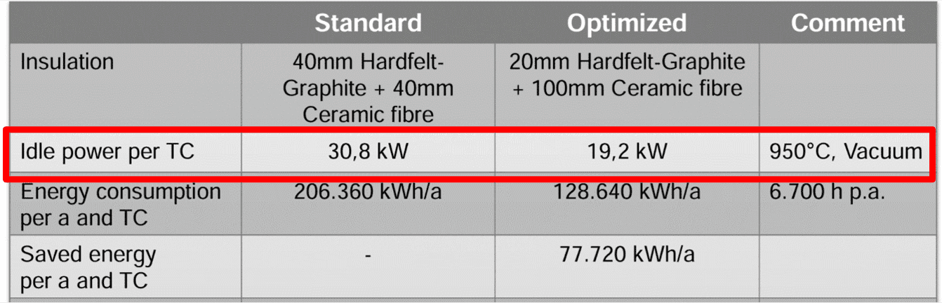 Při investici do nového zařízení se obvykle z nabídky dozvíme, jaký je celkový příkon pece, občas se k tomu přidá i informace o příkonu chladící turbín, oběhového ventilátoru nebo vakuových čerpadel, příkon na topení olejové lázně apod. To jsou ale údaje, které potřebujeme pro dimenzování průřezu přívodního kabelu nebo jističů a pojistek.