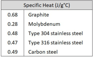 Obr. č. 18 – Tepelná kapacita různých materiálů v peci [1]