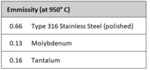 Poklud budeme mít pec s oběhovou vložkou z uhlíkové nebo nerezové oceli, musíme počítat s tím, že se nám emisivita bude měnit s postupující oxidací. U pecí s LPN se používá pro vnitřní chránění izolace Inconelové obložení, se schopností omezené difuze dusíku při nitridaci, ale i tento materiál bude mít tendenci oxidovat, obzvlášť proto, že se jedná o proces založený na směsi NH3 a NO2.