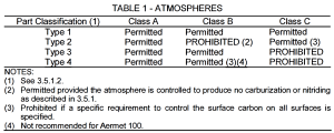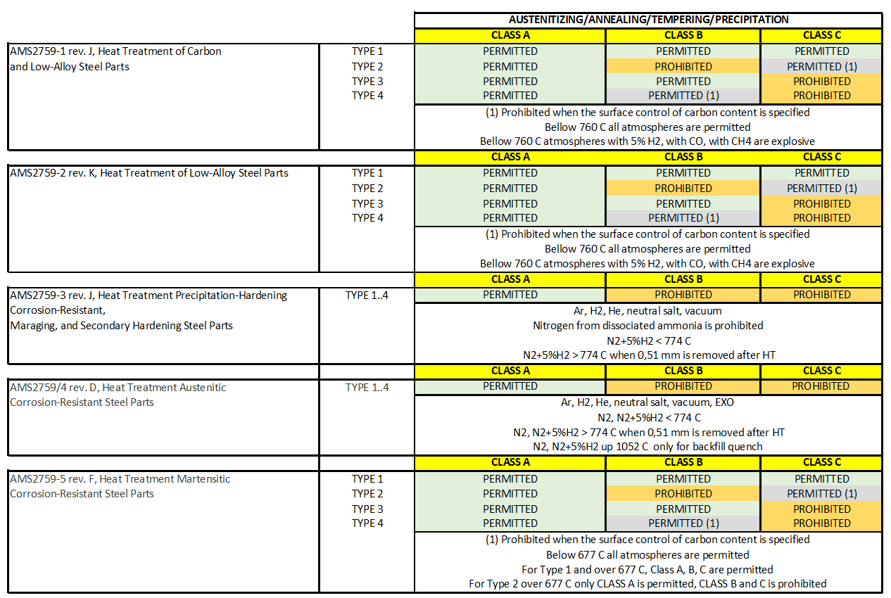 První dvě základní kritéria se vztahují k výrobku versus atmosféra. Norma AMS 2759/1 říká, a ostatní se na ni pak odkazují, že aby se dala správně volit atmosféra pro žíhání nebo popouštění, musíme vycházet ze stavu povrchu. Norma to rozděluje do 4 typů.