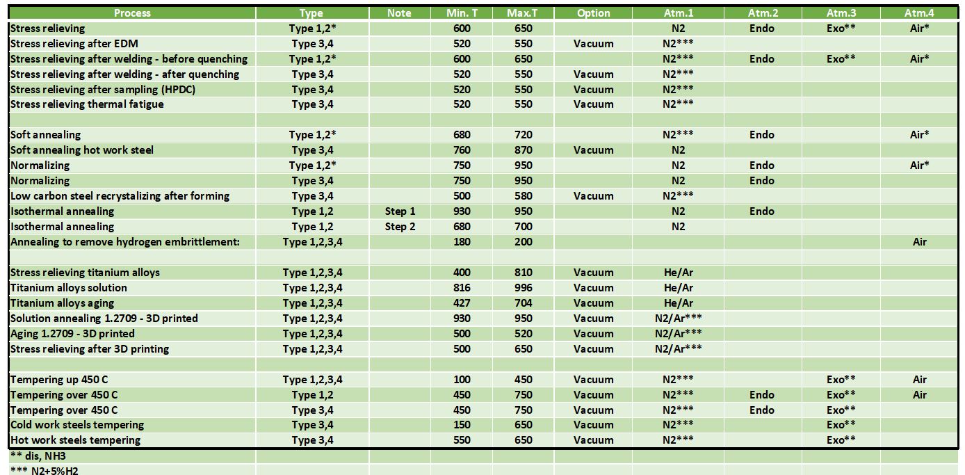 Pokud tomu tak není, musíme při volbě atmosféry zohlednit vliv pracovní atmosféry na změny na povrchu, jako je např. oduhličení nebo nauhličení, oxidace nebo nitridace, a podle toho volit atmosféru zcela neutrální CLASS A, nebo ENDO, EXO, dusík/methanol CLASS B, které sice máme k dispozici, ale mohou ovlivnit povrchovou vrstvu materiálu difuzním procesy.
