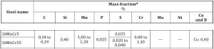 Obr.č. 4 – Chemické složení oceli DIN 16 MnCr5, WN 1.7131.