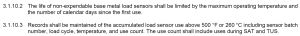 - Pro každý vsázkový termočlánek musí být veden záznam o počtu použití, teplotě použití a číslu měřené šarže, včetně použití pro TUS a SAT