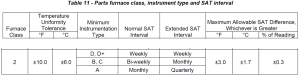 - SAT test (System Accuracy Test) musí být proveden vždy, když dojde na peci ke změně, vedoucí k potenciálnímu teplotní odchylce od SAT