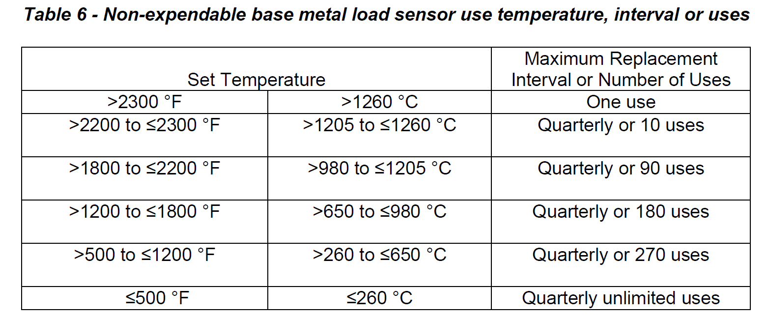 - Pro každý vsázkový termočlánek musí být veden záznam o počtu použití, teplotě použití a číslu měřené šarže, včetně použití pro TUS a SAT