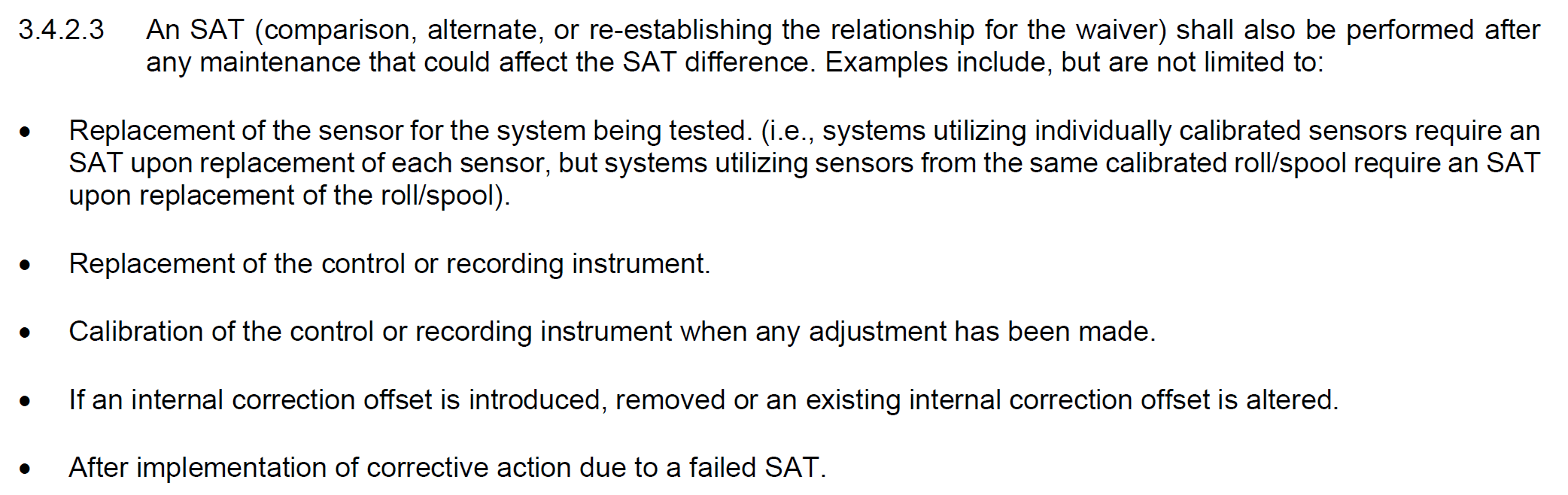 - SAT test (System Accuracy Test) musí být proveden vždy, když dojde na peci ke změně, vedoucí k potenciálnímu teplotní odchylce od SAT