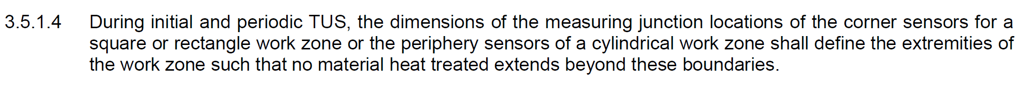 - Při provádění TUS (Temperature Uniformity Survey) musí měřící body přesně vyjadřovat užitečný prostor. Žádný zpracovávaný díl nesmí být uložen do pece mimo tento prostor