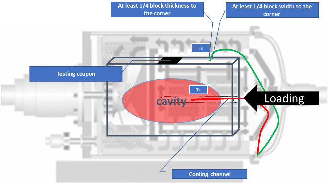 Obr.č. 5 – Příklad umístění vsázkových termočlánků Ts a Tc