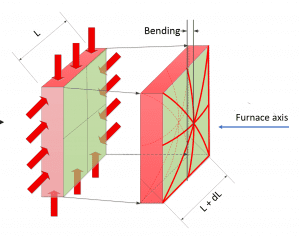 Obr.č. 2 – Grafické znázornění problematiky vyboulení tvarových desek v průběhu ohřevu