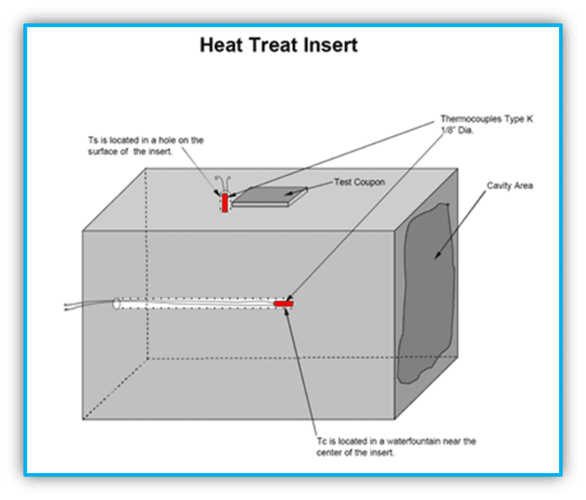 Pro termočlánek Tc je to obvykle jednodušší, protože se dají využít např. chladící kanály. Pro termočlánek Ts ale musí být nástrojárnou skutečně připraven potřebný otvor. Jeho průměr je vázán na zvyklosti kalírny, protože každá kalírna používá jiné průměry vsázkových termočlánků od dia 1,6 mm do 3,2 mm. Je zde tedy druhý důvod, proč musí nástrojárna úzce spolupracovat s kalírnou, a minimálně musí znát průměry používaných vsázkových termočlánků. Hloubka otvoru je 12 až 19 mm. Ten musí být umístěn obvykle na zadní nebo boční straně vložky zhruba ve vzdálenosti ¼ tloušťky nebo šířky tvarové vložky od kraje (Obrázky č. 4 a 5)