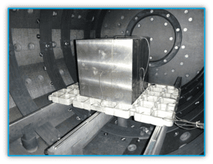 Pokud ale kalíme více tvarových vložek najednou (Obr.č. 7), je obvyklejší polohování tvarových vložek kolmo na osu pece. V tom případě ale platí vše, co bylo výše uvedeno včetně nebezpečí vyboulení. O to důležitější je pak kontrola procesu přes Ts a Tc. Zde je nutno poznamenat, že pokud kalíme spolu tvarové vložky o různých rozměrech termočlánky Ts a Tc se vkládají do tělesa největšího. Aby vše ale probíhalo při ohřevu i kalení správně, tvarové vložky nesmí být rozměrově příliš odlišné. Je úkolem kalírny vsázky proto optimalizovat tak, aby právě tato velikostní i hmotnostní podoba byla dodržena.