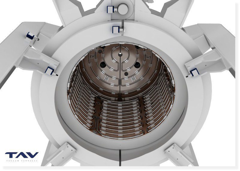 Jiné než mechanické namáhání způsobené rozdílem tlaku mezi vnitřním a okolním tlakem vně pece by provoz při relativně vysokých teplotách s vysokým tlakem plynu vedlo k významným ztrátám tepla do vnějšího prostředí. To je nejen neekonomické z hlediska účinnosti, ale mohlo by to také ohrozit strukturální integritu vodou chlazené ocelové nádoby pece jejím přehřátím. Z toho důvodu jsou sintrovací-HIP pece řady TAV VACUUM PECE HM vybaveny naší speciálně navrženou technologií ICT (Internal Cooling Technology) pro řízení teploty nádoby během cyklu.