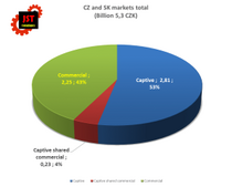 Zhruba 43% pokrývají ryze komerční kalírny, 4% hybridní a čistě in-house 53%. Už jen z těchto čísel vyplývá, že někde je chyba, protože komerční kalírny mají obvykle kolem 20% trhu, zbytek je na tzv. captive. Je ale velmi obtížné ocenit výkonost in-house kalíren, když o nich máme jen mlhavé představy. Tento poměr se příliš nezměnil o mnou původně publikovaných údajů.