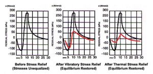Graf porovnání vlivu termického a vibračního žíhání na uvolnění napětí (https://www.stressreliefengr.com/about.html)